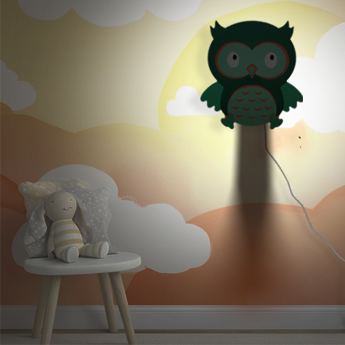 Drvena zidna lampa ambijentalnog osvetljenja i kablom dužine 2m sa prekidačem. Ručno farbana ekološkim bojama koje poseduju sertifikat za bojenje igračaka za decu. Opremljena jakim metalnim držačem i osigurana od povlačenja kabla i blagih udaraca zbog bezbednosti dece.